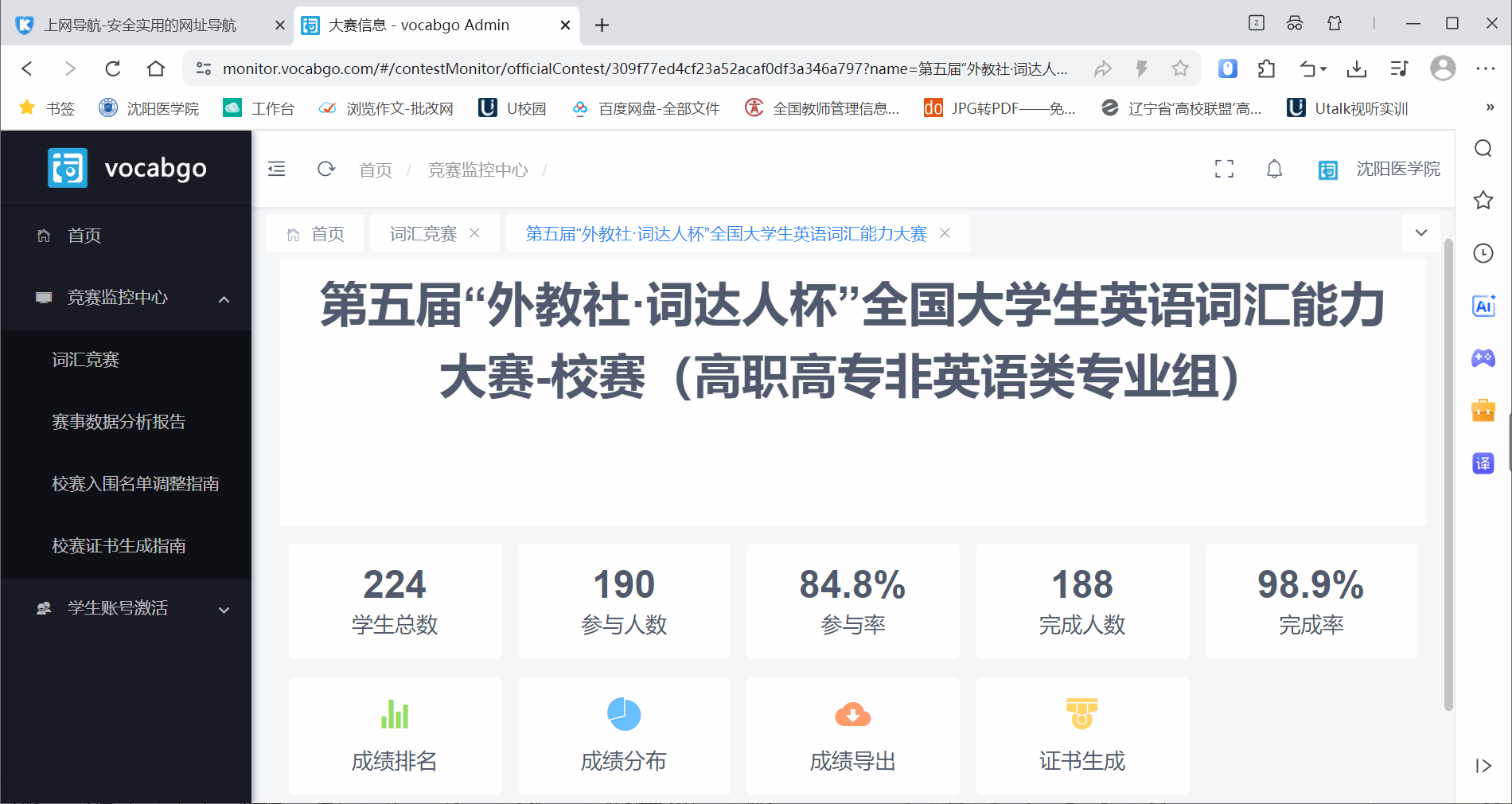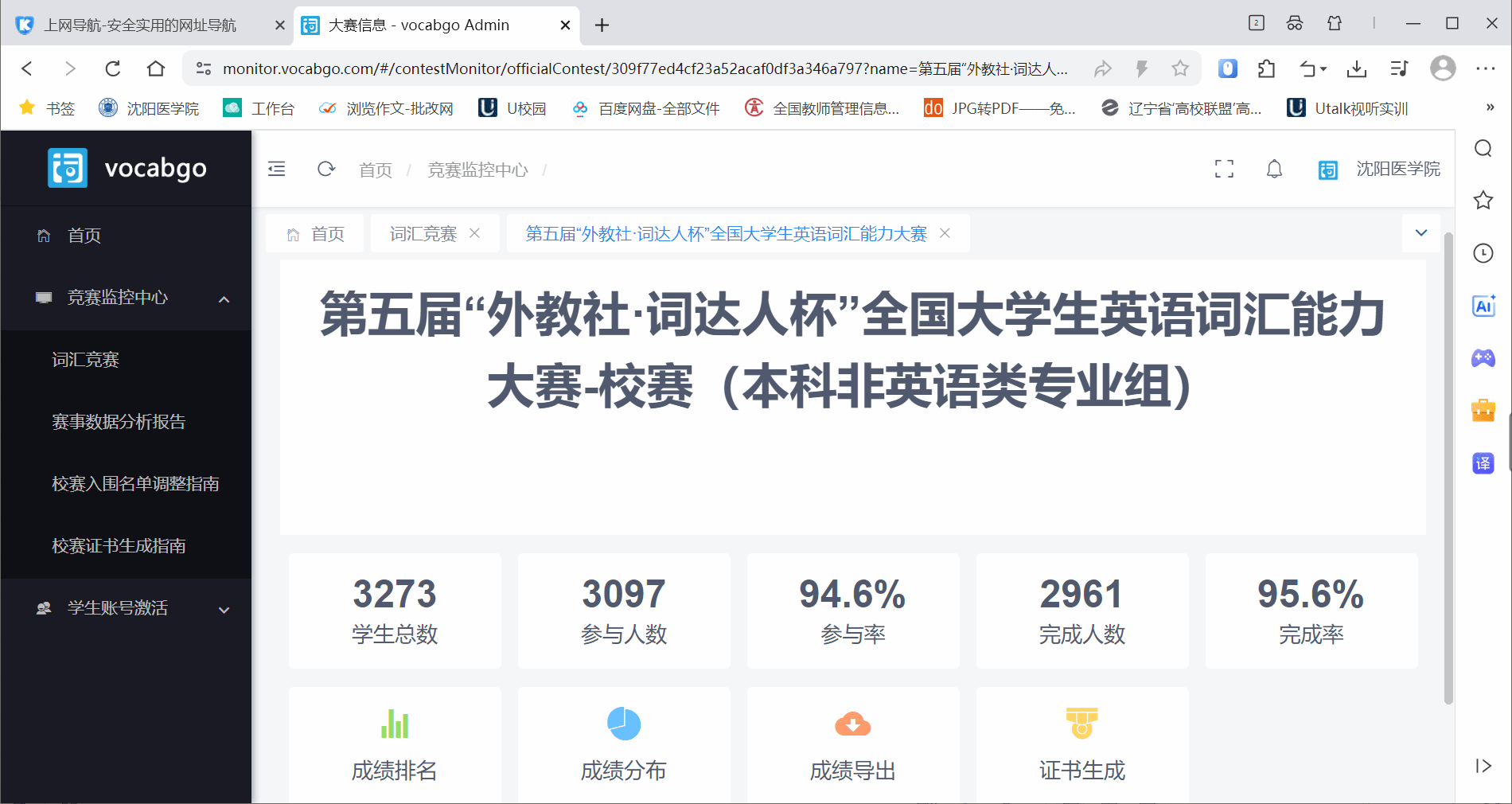 始终秉承“以赛促教、以赛促学”的理念,高度重视学科竞赛对学生英语应用能力提升的促进作用,鼓励学生踊跃参加各类高层次学科竞赛,与全国优秀学子同台竞技,于竞技中明确定位,于交流中提升能力。此次英语词汇能力大赛的组织与参与,不仅能促使学生掌握扎实的词汇量、提升语言表达的精准度和流畅性,更为提升其英语应用能力、推动大学英语教学改革的深入与创新提供了有力支撑。