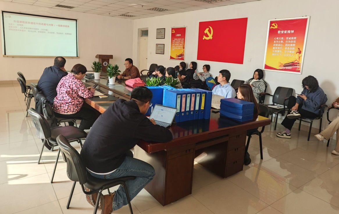 最后,孙哲副教授与老师们共享了几位外语教学研究者关于大学外语课程思政内涵、建设等为主题的文章,交流了自己的学习心得与实践教学中的感想。
